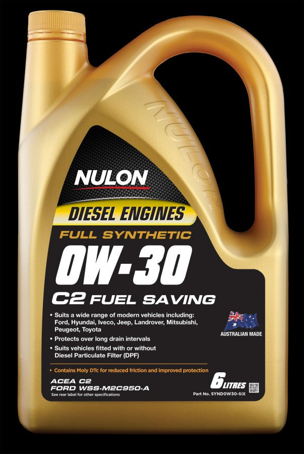 Nulon Full Synthetic 0W-30 C2 Fuel Saving Diesel Engine Oil provides the maximum protection and performance from cold start to high operating temperature. The fuel saving, low viscosity formula ensures optimum engine performance for all technically advanced passenger and light commercial diesel engines.