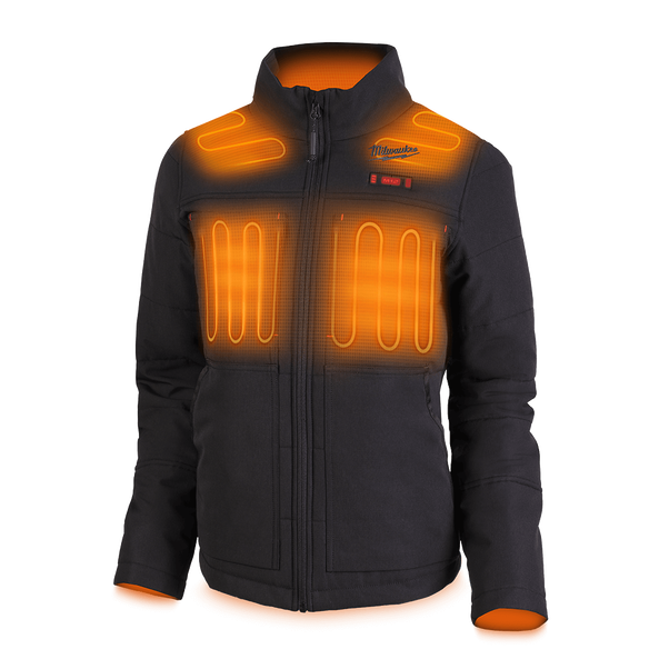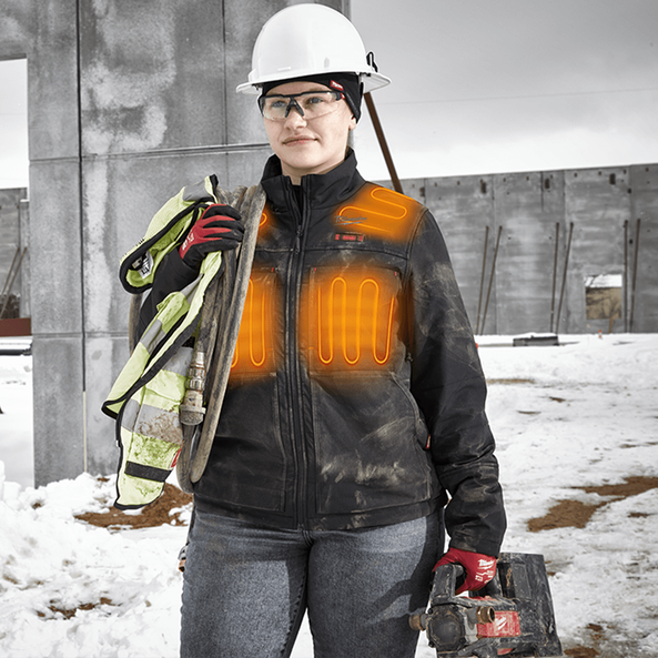 The M12 AXIS™ Heated Women's Jacket delivers heat built for lightweight durability. Powered by M12™ REDLITHIUM™-ION Battery Technology, this stylish jacket features an advanced heat technology system utilizing carbon fiber heating elements to create and distribute heat to the chest, back and shoulders. A single touch LED controller heats up the battery heated jacket to three heat settings, creating a comfortable heat for any environment. A hidden battery pass-thru pocket construction allows for front or back battery placement, increasing comfort and versatility depending on the situation. With re-engineered AXIS™ Ripstop polyester fabric, the AXIS™ women's jacket protects users from abrasion and prevents tears from spreading in harsh jobsite conditions.