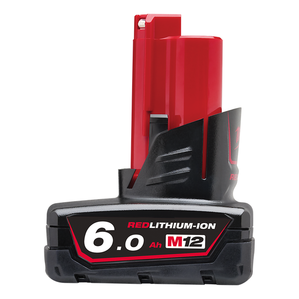 Delivers maximum runtime, maximum power and more life than standard lithium-ion batteries. The M12™ REDLITHIUM™-ION 6.0Ah Battery features superior pack construction, electronics and performance to deliver more work per charge and more work over the life of the pack than any battery on the market. With MILWAUKEE durability built into each pack, this battery runs cooler and performs in climates below 0°F/-18°C. Managed by MILWAUKEE's exclusive REDLINK Intelligence, the battery features overload protection to prevent you from damaging your cordless power tools in heavy-duty situations, while the discharge protection prevents cell damage. The temperature management system and individual cell monitoring help maximize battery life. Upgrade to the M12™ REDLITHIUM™-ION 6.0Ah Battery to instantly increase the runtime and durability of your MILWAUKEE M12 cordless tools.