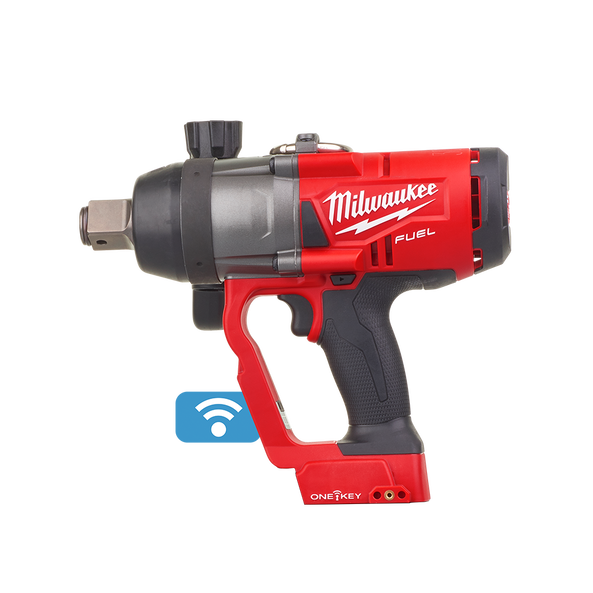 Our M18 FUEL 1" High Torque Impact Wrench w/ ONE-KEY is the world’s first cordless 1” High Torque Impact Wrench. The POWERSTATE Brushless Motor delivers up to 2440Nm of nut-busting torque and 2033Nm of fastening torque, making this the most powerful cordless impact wrench and enabling you to complete the most demanding applications. At only 5.9kg with an M18HB8 battery, the tool is up to 3.1kg lighter than corded units, providing you with less fatigue while making overhead applications easier to complete on the job site. The battery-powered impact wrench provides you with cordless convenience and eliminates your need for compressors, generators, cords, and hoses. This reduces your cost of ownership by lowering energy costs and eliminating routine maintenance on compressors and generators. With no cord or hose, you have greater portability and the ability to complete applications you were not able to do with a corded or pneumatic unit. The REDLINK™ PLUS Intelligence ensures you achieve maximum performance and protects your high torque impact wrench against overloads, over-heating, and over-discharge. M18 REDLITHIUM-ION battery packs are compatible with all M18 tools, providing you with more work per charge and more work over the life of the pack. The 4-Mode DRIVE CONTROL provides you with greater control over the output speed and power of the powerful high torque impact wrench . The ONE-KEY capabilities provide you with the ability to Customise, Track and Manage the impact wrench. ONE-KEY technology also gives you the ability to set a repeatable torque output for maximum control.