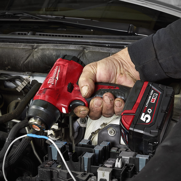The M18 Compact Heat Gun performs applications quickly by reaching operational temperature in less than 7 seconds. Being the most compact electric heat gun among market leaders, it can go places where corded heat guns can’t. The guarded nozzle provides increased protection for work surfaces and the ladder hook allows users to easily hang the tool between applications. Powered by REDLITHIUM-ION battery technology, it is able to heat over 40 connections on a single 5.0Ah battery, anywhere, anytime without the hassle of cords. The M18 Compact Heat Gun features REDLINK PLUS Intelligence with a temperature management system to provide maximum life.