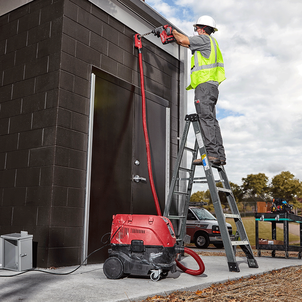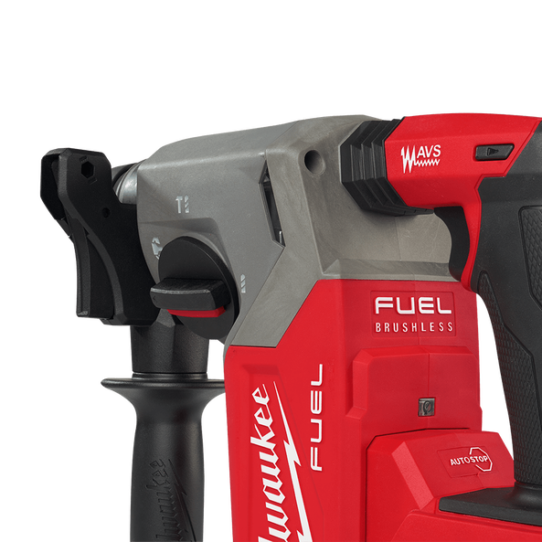 The M18 FUEL™ 26mm SDS Plus Rotary Hammer delivers fast drilling, hard-hitting performance and maximum control for productivity on the jobsite. Designed to achieve top performance with only moderate pressure, the rotary hammer is compatible with all M18™ REDLITHIUM™-ION batteries and is optimised for use with M18™ REDLITHIUM™-ION HIGH OUTPUT™ 6.0Ah batteries (sold separately). The POWERSTATE™ Brushless Motor delivers users 2.7 J of impact energy, 1,330 RPM, and 4,800 BPM, providing speed and power in the most demanding applications. REDLINK™ PLUS Intelligence tool technology ensures maximum rotary drill performance and protects the tool from overload, overheating, and over-discharge. The MILWAUKEE® M18 FUEL™ 26mm SDS Plus Rotary Hammer includes AUTOSTOP™ Kickback Control for maximum control and enhanced safety, with the tool sensing a bind-up situation when users are drilling in rebar or hard aggregate and stopping over-rotation, without the need for the user to release the trigger, indicated by the AUTOSTOP™ Indicator LED. The Anti-Vibration System (AVS) minimises vibration for maximum comfort when in use for extended periods. A Dedicated Dust Extractor (M18FDEX) is also available (sold separately), which once connected is powered by the Rotary Hammer.